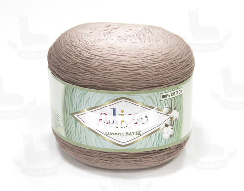 Состав:Хлопок 100% Вес мотка:250 г Метраж:900 м / 250 г Цвет:Бежевый холодный оттенок с переходом цвета Страна:Турция Производитель:Alize