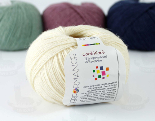 Cool Wool 4-ply от Performance — носочная однотонная пряжа с классическим составом, 4-ниточной круткой и метражом 400м/100г. Подойдет для вязания тёеплых носочков. Шерстяная на ощупь. На детскую пару небольшого размера достаточно будет одного мотка, на взрослые/подростковые носки — два мотка. Рекомендуемые спицы 2-3 мм. Плотность указанная производителем в 10*10 см — 30 п. х 42 р.