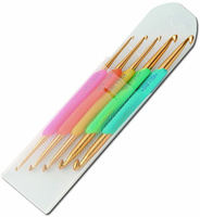Набор из 5 двойных крючков Raku Raku японской фабрики Hamanaka. Высококачественные металлические крючки двух размеров на одной прорезиненной ручке. Длина инструмента 13 см.