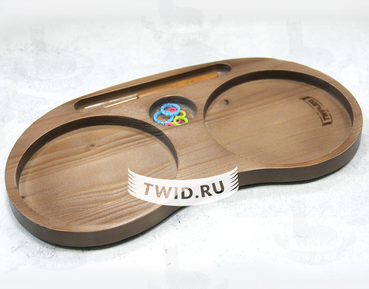 Деревянные платформы для держателей бобин — очень удобный инструмент для вашей вязальной мастерской. Вы можете поставить как один, так сразу два держателя бобин для вязания в две нити. Также на платформе есть углубления — органазер для небольших акссесуаров для вязания, таких как маркеры, крючки, иголки. Антискользящие силиконовые «ножки» крепко будут держать платформу на гладких поверхностях.