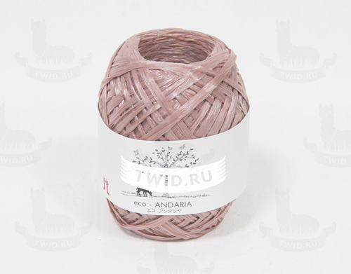 Eco-Andaria от Hamanaka — натуральная рафия японсокго производства. Волокно полностью сгорает в пепел и не плавится, впитывает влагу. Рафия не матовое, не жесткая. Вязать можно как спицами, так и крючком. Подходит для вязания аксессуаров, таких как сумки, шляпы.